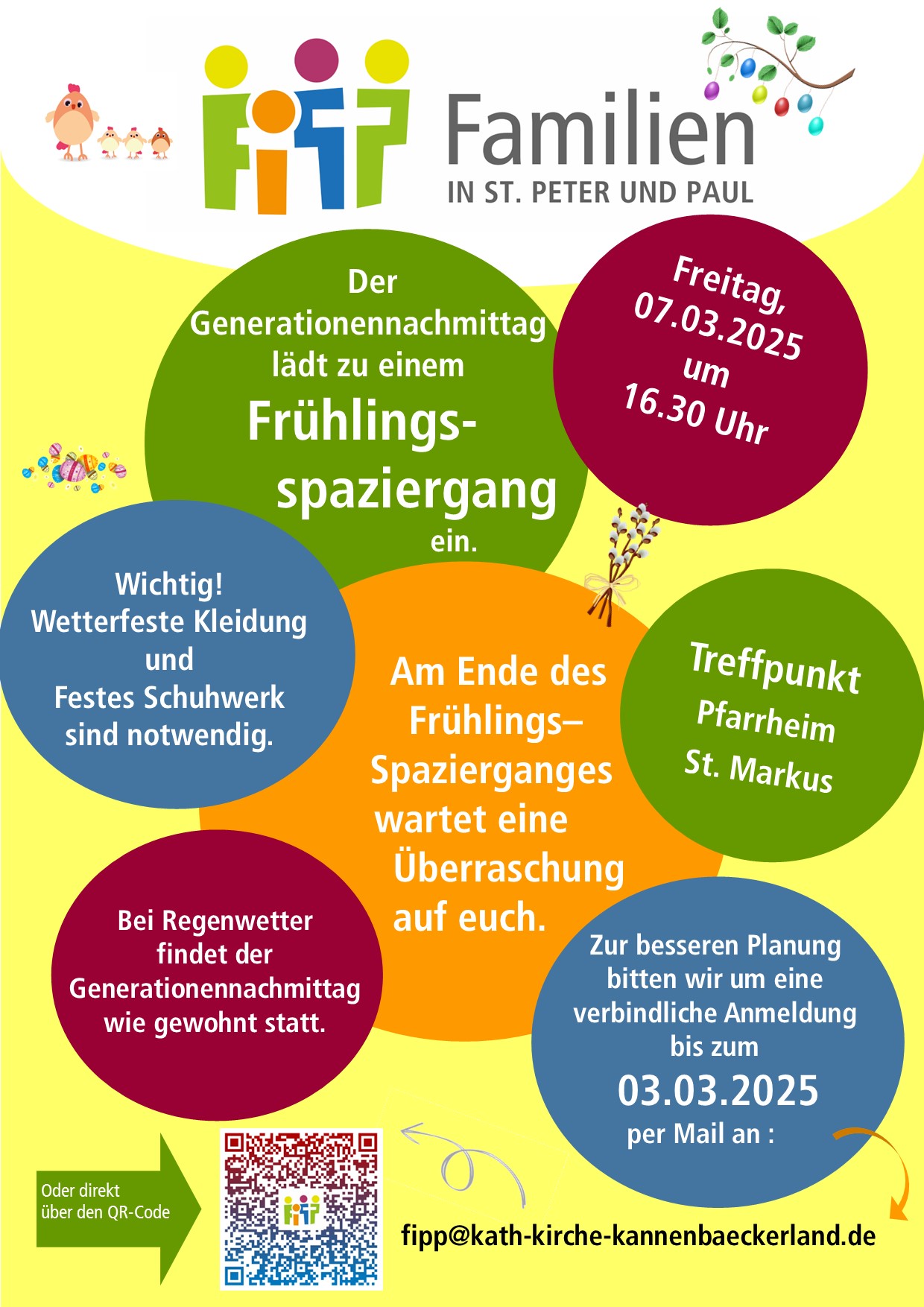 Der Generationennachmittag lädt am 07.03.2025 zu einem fröhlichen Frühlingsspaziergang mit Überraschung ein. Alle Infos gibt es hier: